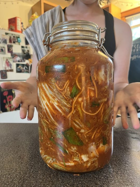 I can’t wait to try making this again, and in the meantime we have a huge jar of kimchi fermenting and waiting to be enjoyed all year long! Thanks Flynn!!